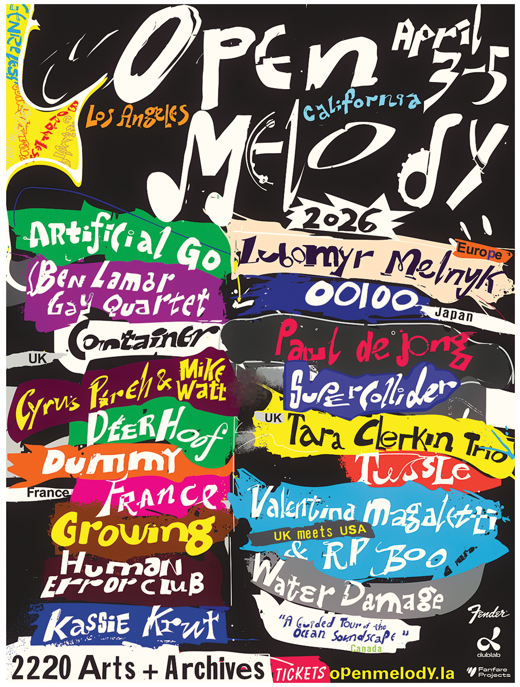 A new independently-produced festival based in Los Angeles featuring artists from around the globe with a focus on adventurous sounds from across genres. Graciously supported by Fanfare Projects, Fender, and dublab.